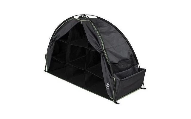 Bequemer multifunktionaler Bogenschrank. Der Schrank kann für die Aufbewahrung von Schuhen, aber auch für andere Gegenstände verwendet werden. Es ist ein praktischer Schrank zum Mitnehmen, da er zusammenklappbar ist. Die Fächer sind mit einer Platte versehen, dadurch ist es noch stabiler. Der Schrank ist leicht aufzustellen und daher ideal für das Camping.
