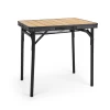 Ein stilvoller Aluminium-Klapptisch im Industrie-Look mit einer Tischplatte. Durch die klappbaren Beine ist der Tisch sehr kompakt zu verstauen. Darüber hinaus ist der Tisch mit einem Netz unter der Mitteldichte Holzfaserplatte-Tischplatte ausgestattet, um Gegenstände zu verstauen.