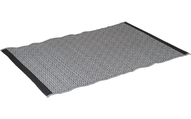 Eine schöner Teppich in schwarz und weiß. Auf beiden Seiten befinden sich ansprechende Motive, so dass der Teppich beidseitig genutzt werden kann. Dieser ist wasserdicht, schimmelresisten und UV-beständig, was eine lange Lebensdauer gewährleistet. Ideal auch als (Vor)Zeltteppich, unter dem Vorzelt, im Park, am Strand oder im Garten. Hergestellt aus einem hochwertigen und leichten 100% Polypropylen 380 gr/m ².