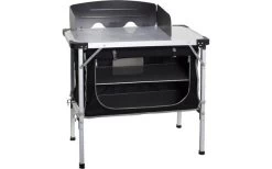 Die Brunner Chuck Box Küchenbox ist mit einem extra starken Aluminiumrahmen und großer MDF Arbeitsplatte mit umlaufender Aluminiumeinfassung ausgestattet. Die gesamte Küchenbox wird in der mitgelieferten Tragetasche verpackt. Sie ist für ein einfaches Aufstellen und Abbauen konzipiert. Der große Schrank mit Reißverschlusstür bietet großzügige Ablagemöglichkeiten für Lebensmittel und Kochutensilien. An der Seite befindet sich ein Klapprahmen für ein faltbares Arbeitsspülbecken.