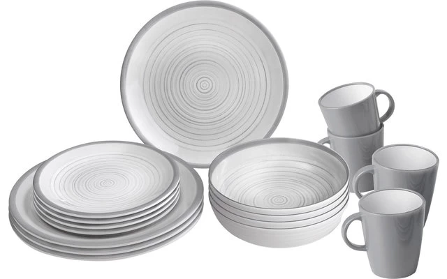 Mit diesem 16-teiligen Melamingeschirr lassen sich Ihre Mahlzeiten in geschmackvoller AtmosphĂ€re genieĂen. Zudem ist das Geschirr-Set leicht, hochwertig verarbeitet, robust und langlebig. Und das Beste: nach dem Essen können Sie sich entspannt zurĂŒcklehnen, denn das Set lĂ€sst sich ganz einfach in der SpĂŒlmaschine reinigen.