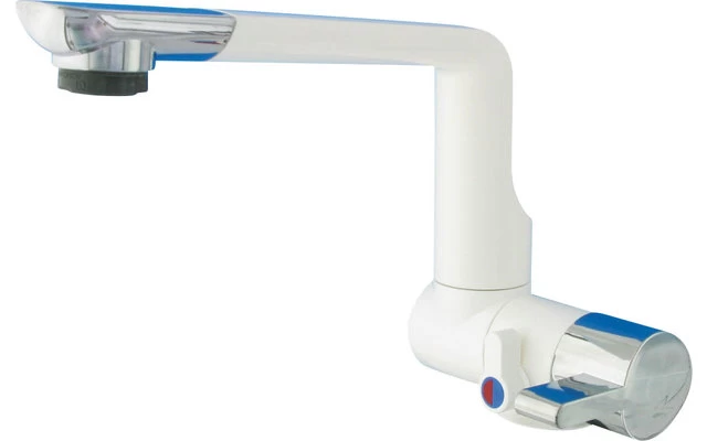 Der Einhebelmischer ARONA ist eine moderne Kunststoffarmatur. Die hohe Funktionalität unterstreicht der schwenkbare Auslauf, die gut zu reinigende Oberfläche sowie der ausschraubbare Wasserauslass mit standardmäßig mitgeliefertem Reinigungsschlüssel zum Entkalken und Reinigen. Wassermenge und Temperatur sind getrennt einstellbar. Die Armatur ist druckwasserbeständig bis 1,5 bar. Der Mikroschalter (max. 3 A) ermöglicht den Einsatz in Caravan und Reisemobil.