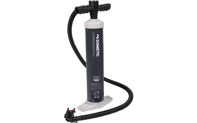 Die praktische Dometic Downdraught 2.2 Handpumpe mit Manometer ermöglicht ein schnelles, einfaches und optimales Aufpumpen der Dometic Vorzelte. ZusĂ€tzlich verfĂŒgt sie ĂŒber ergonomische Griffe, damit die Luftpumpe angenehm in der Hand liegt.