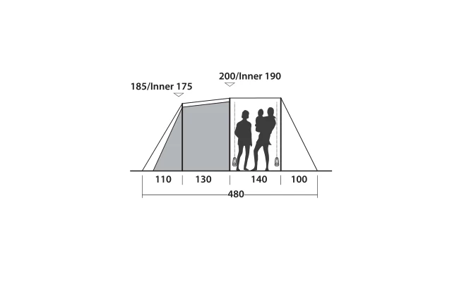 - Familientaugliches Tunnelzelt mit groĂźem Aufenthaltsbereich