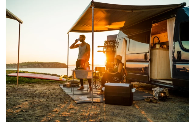 Spezielle AusfĂĽhrung der Markise F80s fĂĽr den Dcuato, komplett mit Halterungen und Dichtungen.
