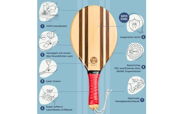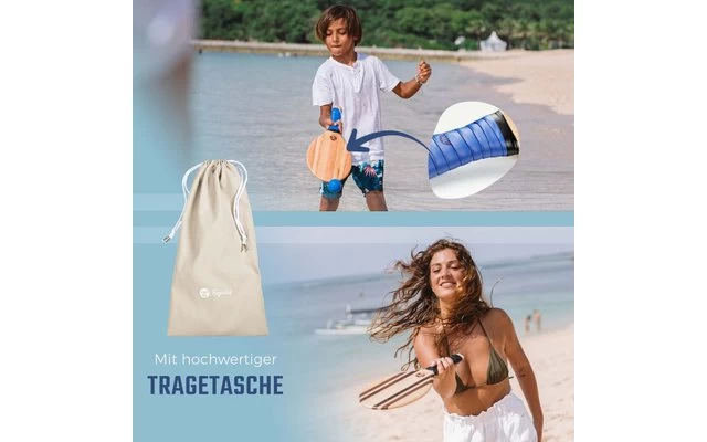 Kein minderwertiges Pressspan sondern makellos verarbeitetes, robustes Hartholz (Linde, Schwarznuss, Eiche). Dies wird dein letztes Beachball Set sein.