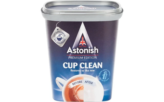 Der speziell fĂŒr Melamingeschirr entwickelte Reiniger beseitigt schnell und problemlos BraunfĂ€rbung, Tee- und Kaffeeflecken – ohne zu scheuern. Hinweis 1
