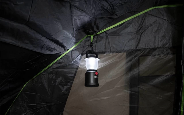 Abgedunkeltes Innenzelt mit Vario Vent Control System. 2 Moskitonetz- Eingänge halten lästige Plagegeister fern und kann bequem von innen je nach Klima variabel bedient werden. Mit einer Reißschluss- Trennwand lässt sich das Innenzelt in eine große Kabine oder 2 Schlafbereiche aufteilten. 5 Praktische Organizer und 6 Innenzelttaschen für Utensilien. 2 Lampenhalter für Campingleuchten runden den Komfort ab.