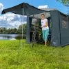 GerĂ€tezelt aus sehr robustem 150D Hypertex Material. EingenĂ€hter Boden, der Schmutz und Feuchtigkeit fern hĂ€lt. Die Bodenwanne kann im Eingangsbereich mittel ReiĂverschluss fĂŒr einen ebenen Eingang heruntergeklappt werden. 2 Klarsichtfolienfenster mit Abdeckklappen bringen Licht ins Zelt.