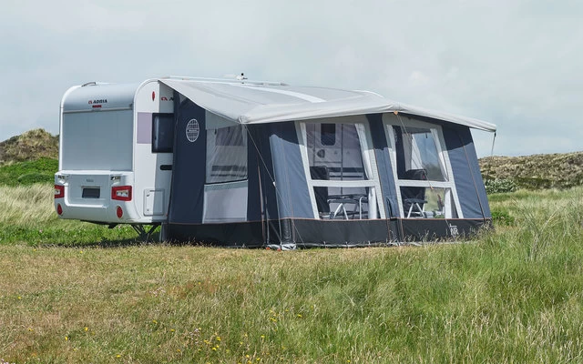 Das Isabella Air Cirrus North 400 ist ein hochwertiges, aufblasbares Reisevorzelt für den Wohnwagen für Camper, die auf der Suche nach einem qualitativ hochwertigem Vorzelt sind, das dennoch leicht und aufpumpbar ist. Dank des benutzerfreundlichen 1-Punkt-Luftsystems, welches aus miteinander verbundenen Luftschläuchen besteht, kann das Cirrus über ein einziges Ventil vollständig aufgepumpt werden. Die fast senkrechten Wände und die Lichtleisten im Dach sorgen für ein angenehmes und geräumiges Gefühl. Dank des atmungsaktiven Isacryl Materials ist der Aufenthalt bei allen Wetterbedingungen angenehm. Die Vorder- und Seitenwände können vollständig mit dem Reißverschluss entfernt werden, um ein komfortables Vordach zu schaffen. Mit der mitgelieferten aufblasbaren Verandastange ist es möglich, eine der beiden Vorderwände zu falten. Wenn Sie zusätzlichen Platz benötigen, können Sie das Cirrus sowohl links als auch rechts mit dem optionalen Anbau erweitern. Auch für Wohnwagen mit Hubbett (Gesamthöhe der Fahrzeugs bis 275 cm) passend.