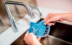 Die Koziol »HI Gesichtsmaske reduziert den AusstoĂź von Partikeln aus der Atemluft des Trägers an die Umgebung und reduziert somit die Ansteckungsgefahr fĂĽr andere. Gleichzeitig schĂĽtzt sie den Träger vor unbedachten BerĂĽhrungen der Lippen, der Nase und des Gesichts, und damit der Selbstinfizierung ĂĽber die Hände. Die Maske besteht aus einem medizinisch geprĂĽften, flexiblen Kunststoff und kann mit dem migelierferten Gummiband auf jede Kopfgröße individuell eingestellt werden. Ein Filter aus Vlies ist im Lieferumfang enthalten. Die Maske wird mit Seife gereinigt (auch spĂĽlmaschinengeeignet). Das Filterelement wird ausgetauscht.Â