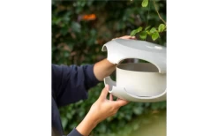 Birds go outer space, ist eine neue Generation der Vogelfutterhäuschen. Ein moderner Flugkörper, bei dessen Entwicklung auf eine ornithologisch korrekte Fütterung geachtet wurde. Das Futtersilo im Herzen des Raumschiffs verhindert, dass seine Passagiere auf dem Essen herumhüpfen und es verunreinigen. Wir wünschen guten Flug!