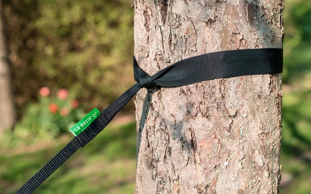 - Der 40 mm breite Baumgurt lässt sich bequem anbringen, bietet optimalen Halt und schont die Baumrinde.