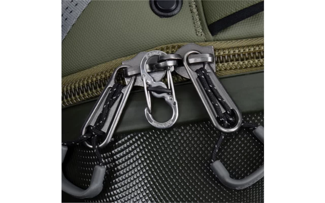 der mit einem einfachen Dreh hin beide Karabineröffnungen sicher verschließt und so ungewolltes Öffnen (und Verlieren) verhindert.