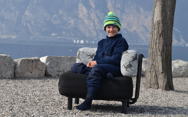 Durch Luftablassen lässt sich bei Bedarf das Volumen des kompletten Sitzelements auf ein Viertel reduzieren!