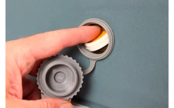 Die Camp Star Midi 100 besteht aus einem 10 cm tiefen, flachen Schaumstoff mit horizontalen Bohrungen, die sie leichter und komprimierbarer machen. Das Aufblasen der Matte erfolgt über ein patentiertes Einweg-Cyclone-Ventil, das sich in der unteren Mitte der Matte befindet und die Matte mühelos, schnell und effizient aufbläst und entlüftet.