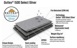 Outwell Event Lounge Seitenwand aus Outtex 1500 Select Silver Material. Das ist ein strapazierfähiges, langlebiges, flammhemmendes und PU-beschichtetes Material. Es besteht zu 100% aus Polyester, wurde mit perfektem Gewicht-Leistungs-Verhältnis entwickelt und hält den Ansprüchen des normalen Wohnwagena