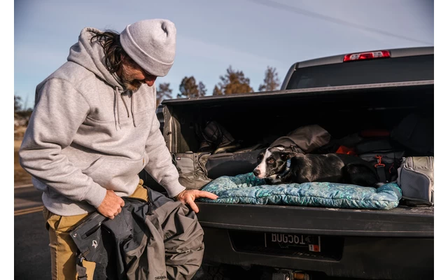 Ein vielseitiger und praktischer Ruheplatz für Hunde, die sich vor, nach oder auf dem Weg zum nächsten Abenteuer niederlassen und ein Nickerchen machen wollen. Konstruiert als ein bequemer, leicht zu verstauender und leicht zu reinigender Schlafplatz.