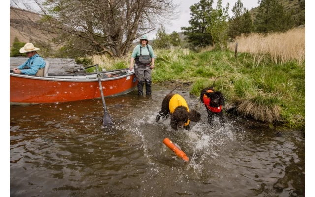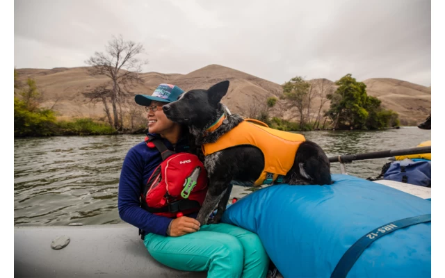 Die Weste besteht aus umweltfreundlichem Gaia Schaumstoff, verfĂĽgt ĂĽber innovative Details und einen fest verankerten Griff, welcher optimal positioniert ist, um den Hund aus dem Wasser ins Boot zu heben.