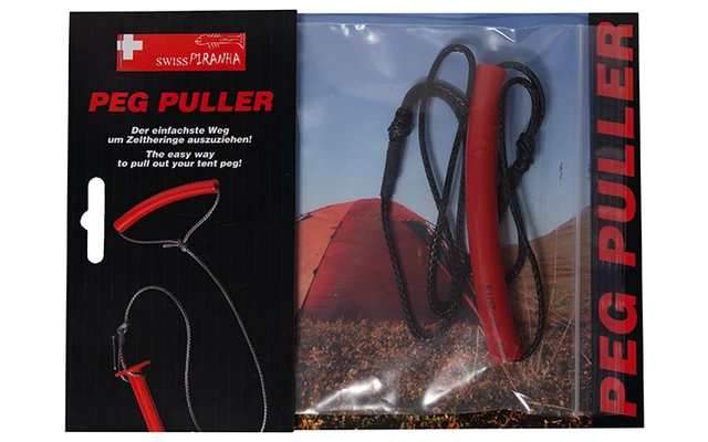 Mit dem PegPuller entfernt man schnell und rĂŒckenschonend bombenfest sitzende SwissPiranha Heringe. Einfach die Schlinge unter den Kopf des Herings legen und nach oben ziehen â so einfach ist das! Die dĂŒnne Schnur aus hochreiĂfestem Dyneema ist mit einem bequemen Griff ausgerĂŒstet. Federleicht und mini im PackmaĂ findet der SwissPiranha PegPuller in jeder Hosentasche Platz. Na dann: Full Pull!