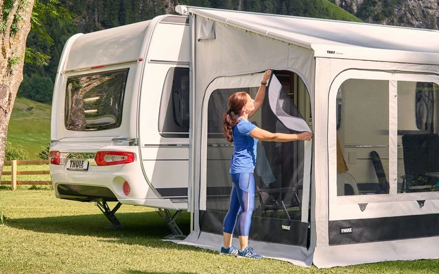 Zusatzpanel mit ReiĂverschluss, um die Standard Seite des Thule Panorama Zeltes zu ersetzen. Hergestellt aus Moskitonetz, um fĂŒr zusĂ€tzliche BelĂŒftung zu sorgen.