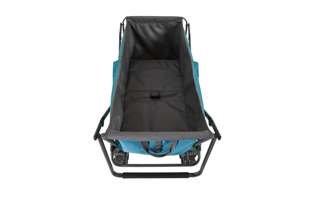 Durch den weichen, langen Griff lässt sich der Uquip Buddy gut ziehen und lenken. Unterstützt wird das Ganze durch die großen, robusten Geländeräder. Durch den Faltmechanismus lässt er sich weiterhin einfach Kofferraum eines Autos verstauen.