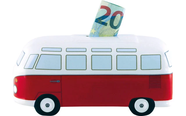 Einzigartige Spardose im legendären VW Bus Samba Design. Die Spardose ist aus hochwertiger Keramik und mit viel Liebe zum Detail gefertigt. Der geräumige Innenraum schluckt viel Geld und garantiert kein Benzin – so lässt es sich am Besten fĂĽr den nächsten Urlaub sparen! Inklusive Geschenkkarton.