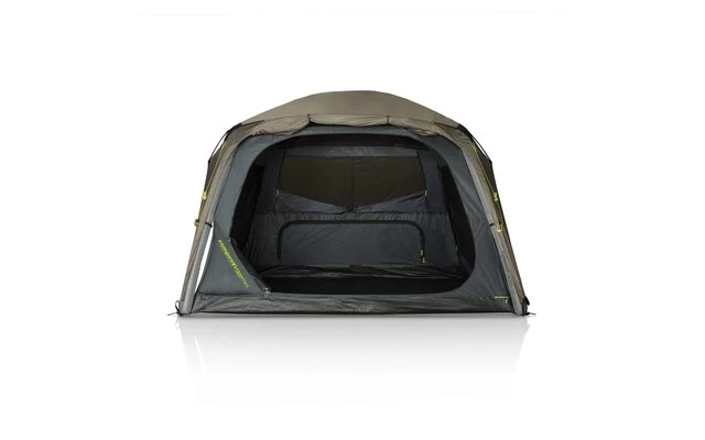 Dank des aufblasbaren Gestänges lässt sich das Zelt in wenigen Minuten aufbauen, die mitgelieferten Stirnstangen maximieren das Innenvolumen. Das Innendach besteht komplett aus Mesh, wodurch die warme Luft entweichen kann und die Kondensation minimiert wird. Je nach Wetterlage können Sie das Außenzelt abnehmen, die seitlichen Innenfenster mit einem Reißverschluss verschließen und den Blick auf den Sternenhimmel genießen.